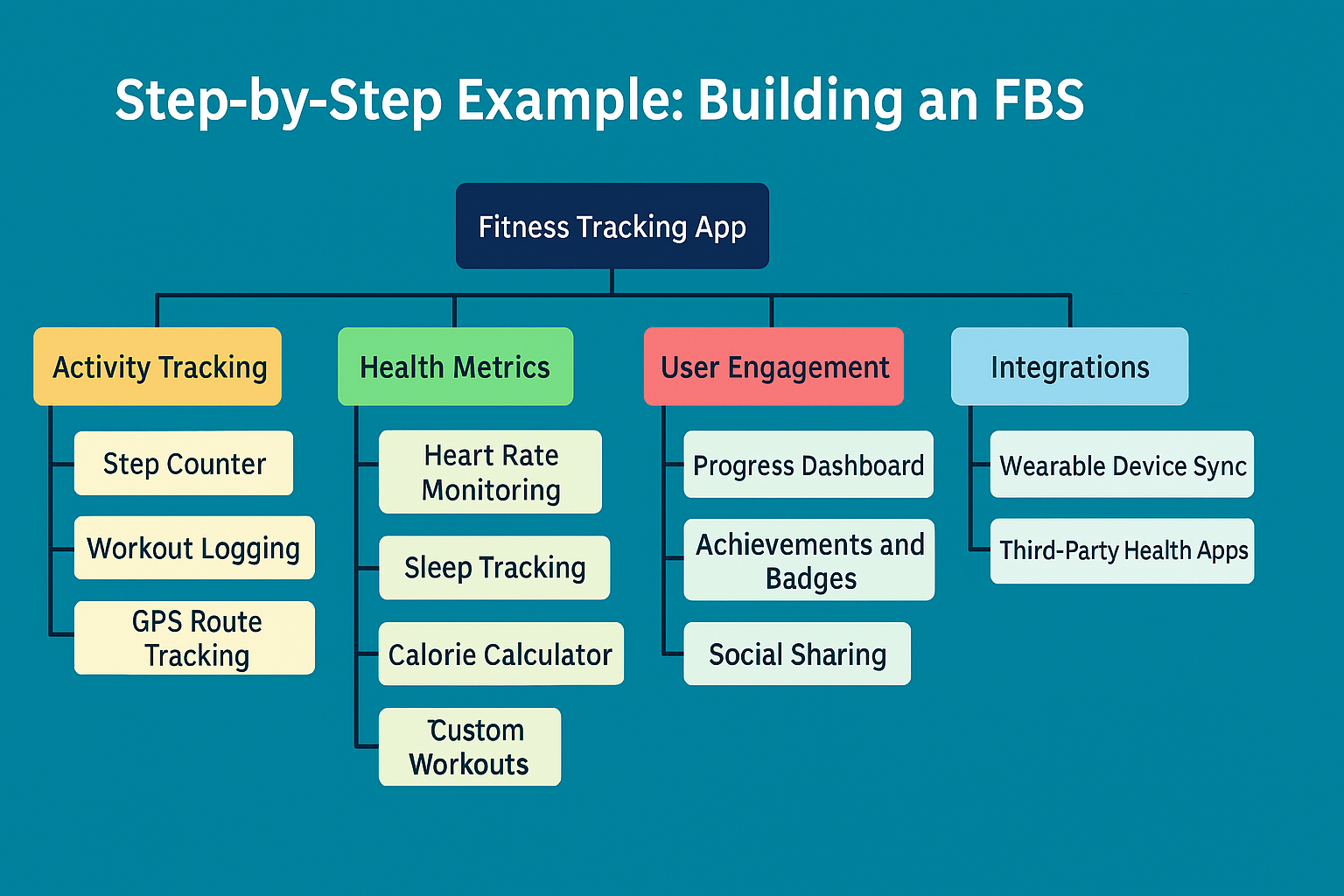 Once the FBS is created, each feature or sub-feature can be turned into items in the product backlog. User stories can then be written for each feature, and features can be prioritized according to value. For example, the team may decide to implement “Step Counter” and “Progress Dashboard” first, since they provide the core user experience. Other features, like “Wearable Device Sync,” can be scheduled for later releases. This way, the FBS becomes a roadmap for turning vision into working product increments.