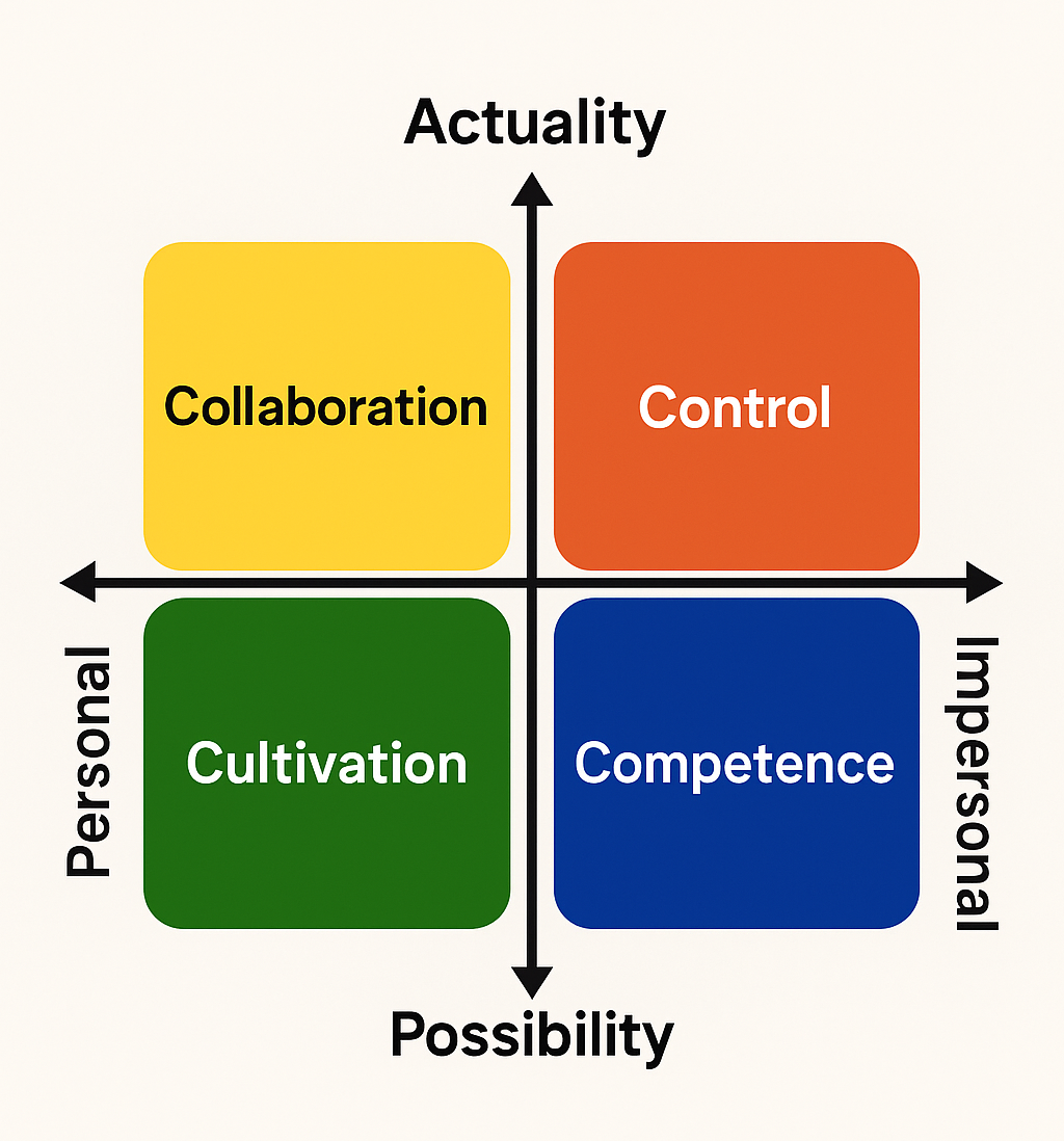 In a Cultivation Culture, purpose and growth are central. This pattern appears in creative environments, startups, and nonprofits, where people want their work to matter and look for leaders who inspire. Effective leadership emphasizes vision and purpose, encourages experimentation and learning, and supports autonomy and personal growth; people in these settings seek meaning, not micromanagement.