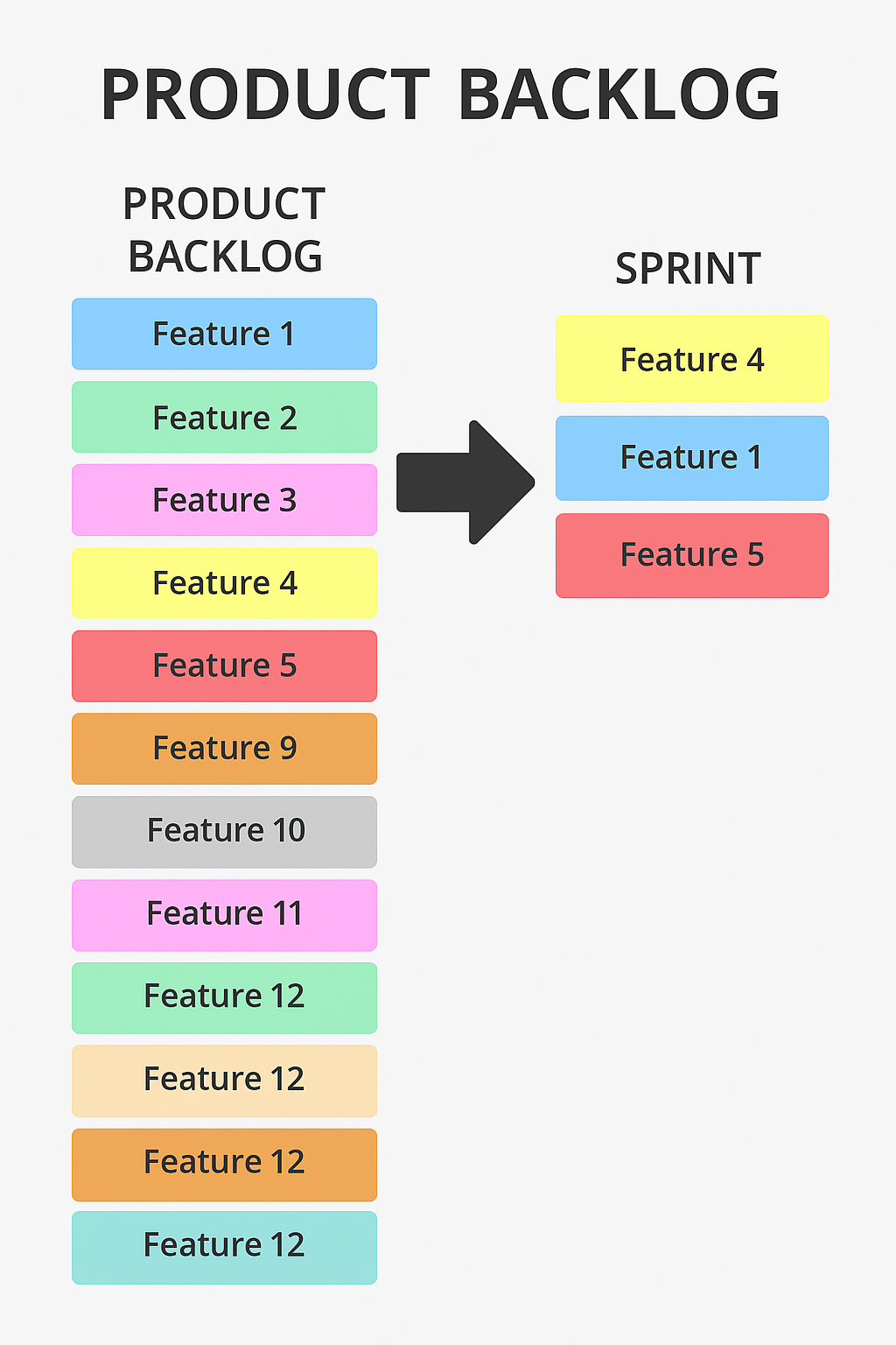 In a banking app, early backlog items could include: “View account balance,” “Transfer money,” and “Set savings goals.” Each is a small slice of value. Together they start to shape the product. Examples like these help the team and stakeholders visualize progress, even before the first Sprint begins.