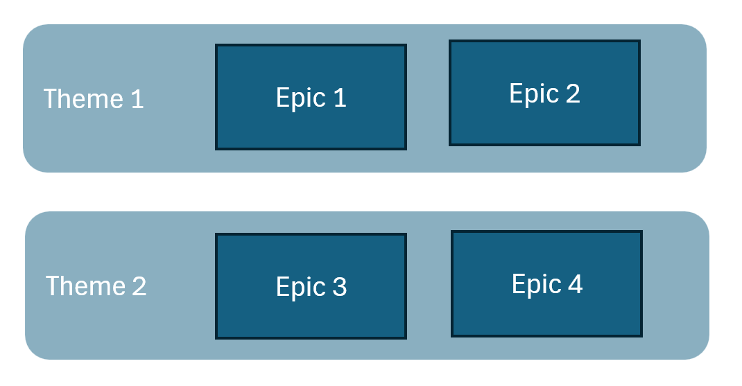 In some companies, you may hear the word capability at the top of the hierarchy. In others, you may hear epic used in the same way. Some organizations use themes to group epics by business objective. The details of the hierarchy can vary, and that is normal. What matters most is that there is a structured way to move from a broad vision down to deliverable work items. Do not get stuck on the labels—focus on the flow.