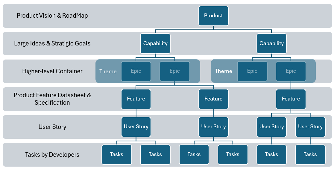 Are you lost yet ? All these terms like epics, themes, capabilities, features, and user stories, the hierarchy can feel confusing. Different organizations also use slightly different labels and structures. That is why it is important to step back and see the bigger picture. The main point is not to memorize every term, but to understand that backlog items form a hierarchy. Large ideas are broken into smaller pieces until they are ready for the team to build.